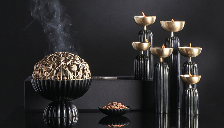 Aadya Diya Tea Light Holder Set Black