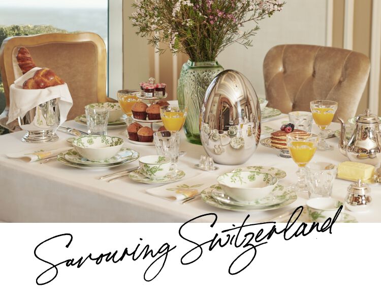 Swiss dining is all about the joy of eating together. From sophisticated brunches to hearty lunchtime feasts, quality time is shared over locally sourced food and hand-crafted tableware. Christofle silverware is the perfect addition, alongside Bernardaud’s delicate porcelain with its intricate detailing.