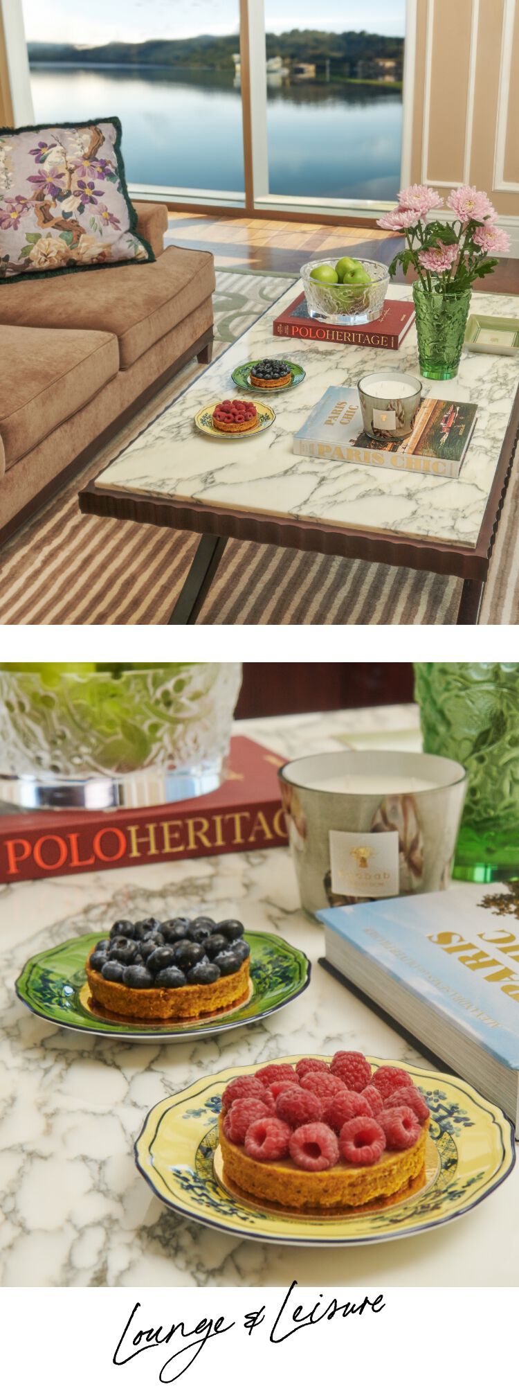With beautiful lake views, there’s no better place to relax after a day of exploring than the comfort of your living area. Style your coffee table with everything you need to enjoy these blissful moments, placing Assouline books and Lalique crystal bowls. Treat yourself to something sweet from the local patisserie, presented perfectly on Ginori plates.